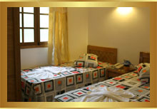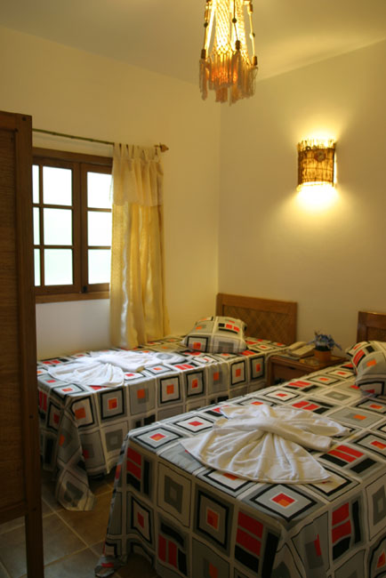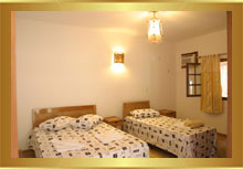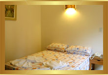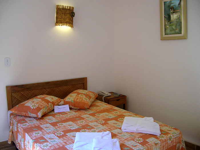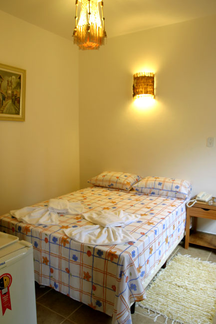 Cama Americana. A suíte Luxo é maior, com acesso privativo e pequena