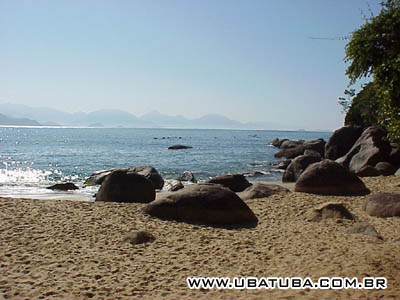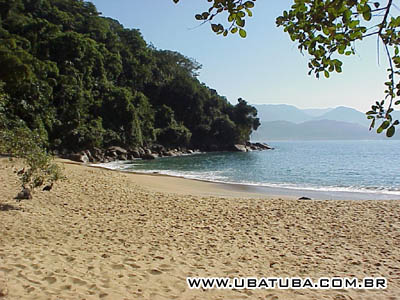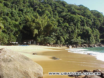 Praia de tombo bela e pequena de areias grossas e brancas, presença de