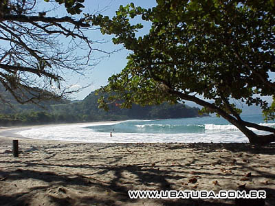 surf. No canto direito o mar é calmo, formando uma piscina natural. Possui areia