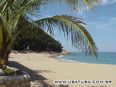 Praia pequena com areia grossa e muitas conchas. Tem alguns coqueiros e o mar